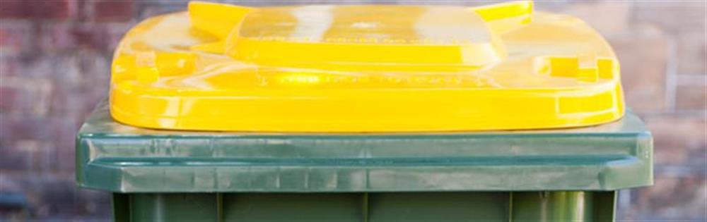 The yellow recycling bin